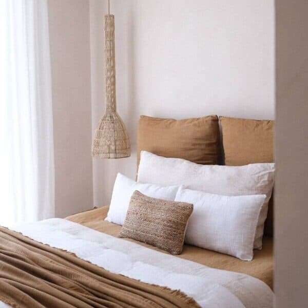 Avec sa texture naturelle et ses teintes subtiles, elle apporte une touche authentique et chaleureuse à la chambre à coucher.