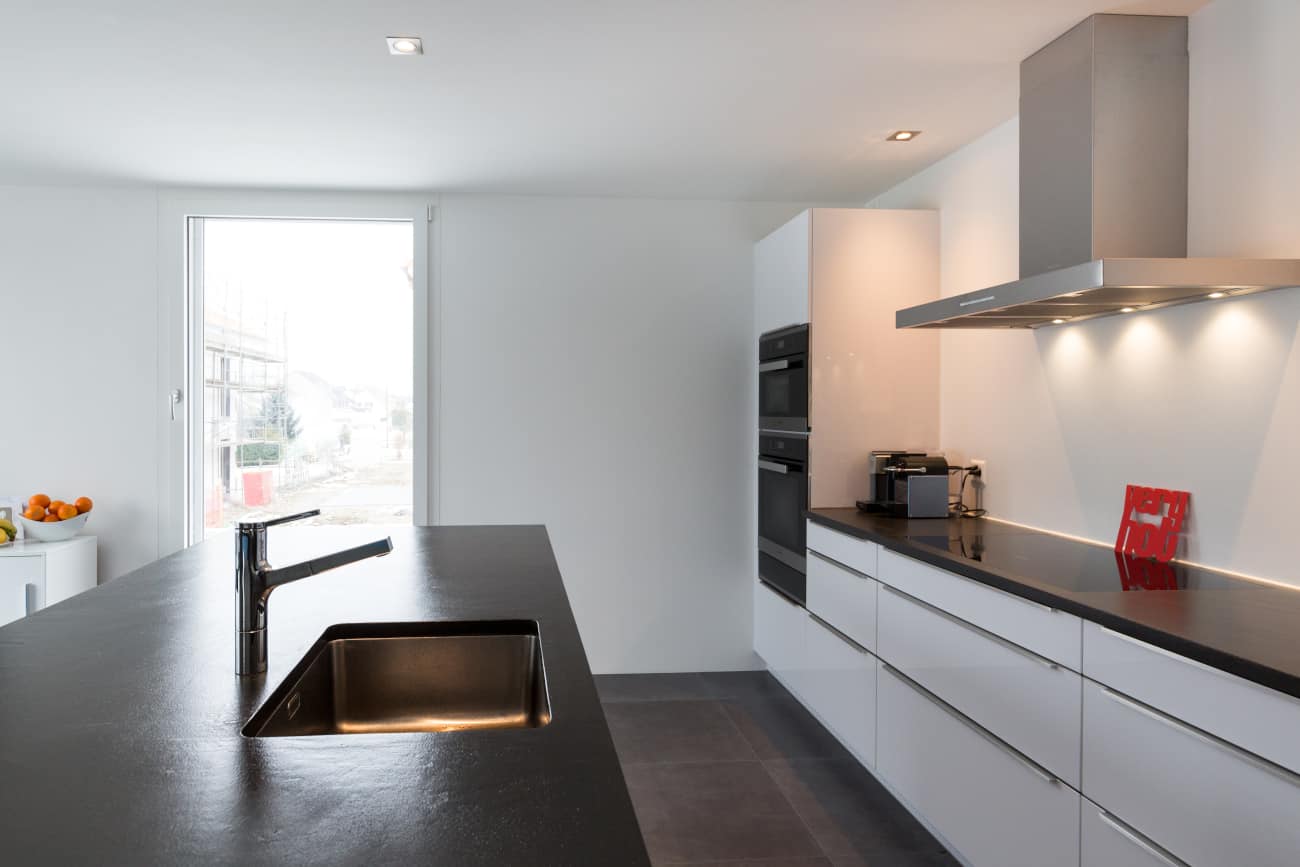 En cuisine, le béton ciré noir associe résistance et lisibilité.