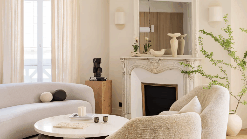 ” «Je suis née dans le 18e à Paris et je ne l’ai jamais quitté », raconte Delphine. C’est le fort attachement à son « Village » de Montmartre qui lui a donne envie d’y investir et de s’installer avec son compagnon Maxime. Delphine est une passionnée dans tout ce qu’elle vit et entreprend. Elle a décidé d’acheter cette réunion de deux studios mal agencés et vétustes à la suite d’une première et unique visite. «Tout était à repenser et ce coup de coeur présageait de longs mois de travaux. Mais le calme, la vue sur les toits et la perspecfive sur le mythique « Moulin de la galette » en valaient la peine. Delphine et Maxime ont fait appel à l’archltecte Nissim Haguenauer (Gare du Nord architecture). Très vite, le trio s’accorde pour respecter l’empreinte classique du lieu tout en l’adaptant au mode de vie d’un couple d’aujourd’hui. II a fallu revoir l’espace dans son intégralité et huit murs ont été abattus. « Je souhaitais conserver de beaux volumes, voila pourquoi on retrouve deux espaces de quarante metres carrés. L’un dédié à la réception, l’autre a l’intimité. L’architecte a imaginé l’espace comme une suite luxueuse d’hôtel» précise-t-elle. Pour la decoration, Delphine est restée fidèle à I’univers de sa marque de bijoux bresiliens Hipanema. « J’adore chiner et mélanger les genres, et rien n’a plus de valeur a mes yeux que les pièces rapportées de mes voyages. Colliers de coquillages d’Indonésie, couteaux en turquoise d’Arizona, trône indien ». Maxime, plus sobre, aime les objets industriels, Scandinaves, issez fifties, et il a fallu que Delphine bataille pour imposer ses lampadaires Jansen. Mais ses arguments l’ont emporté et nous séduisent tout au long de la visite.”