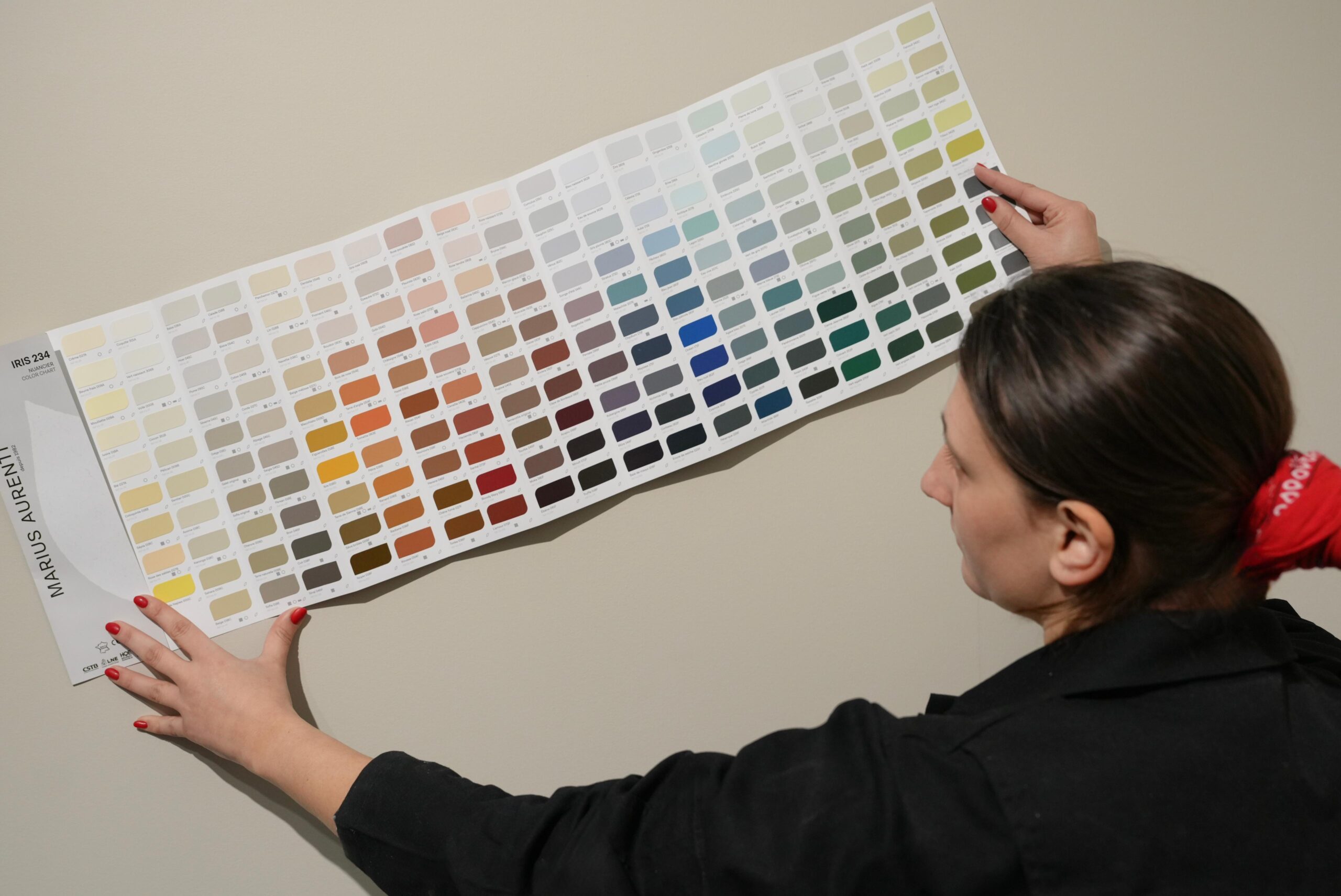 IRIS 234 est la troisième édition du nuancier de référence Marius Aurenti. Il constitue la base chromatique commune à l’ensemble des matières de la marque : peintures, chaux, bétons muraux et béton ciré.