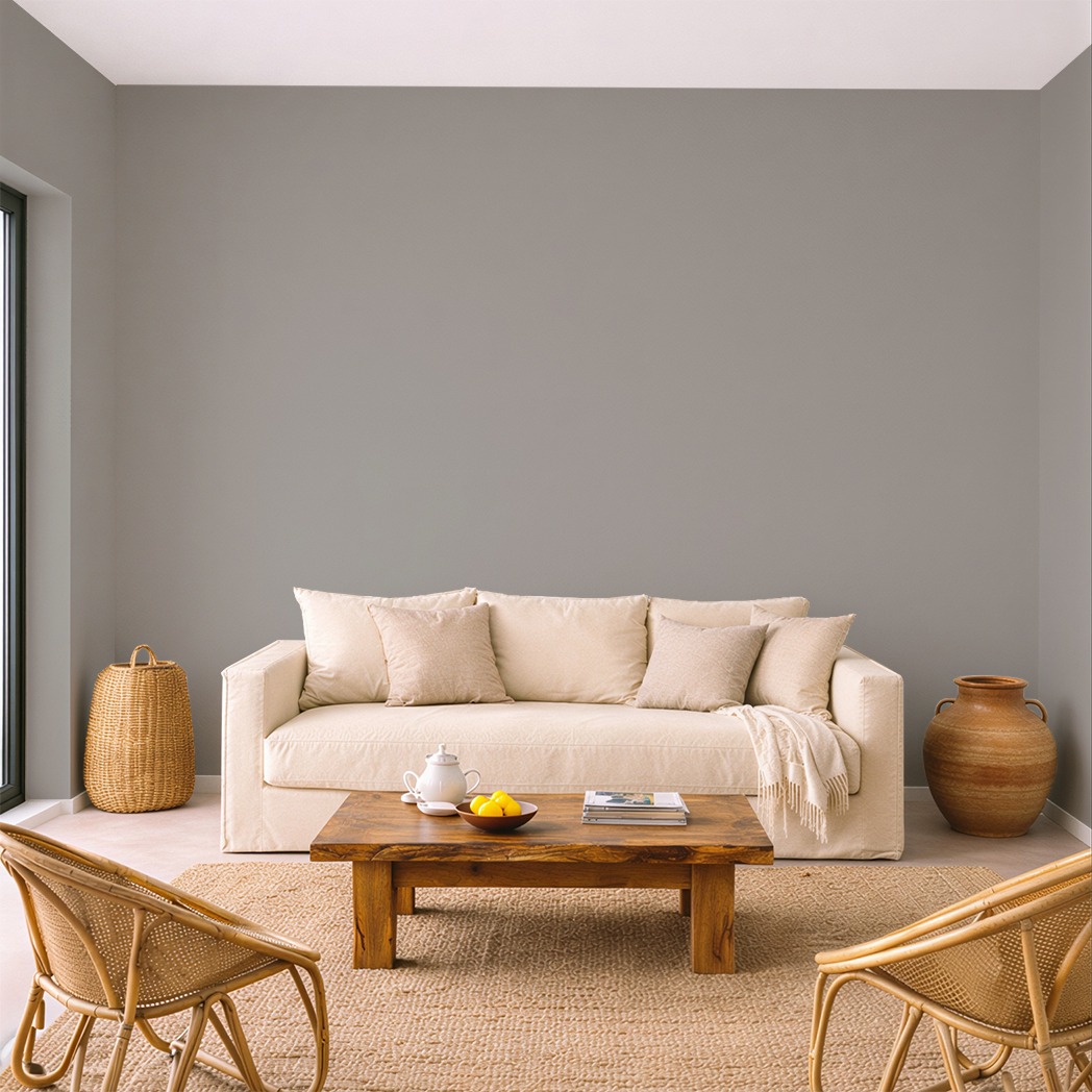 La flanelle, tissu de laine légèrement feutré, possède une surface douce et mate. La couleur reprend cette sensation tactile à travers un gris tempéré et enveloppant. Dans la palette, elle agit comme un gris neutre confortable, capable d’accueillir des contrastes plus clairs ou plus profonds.