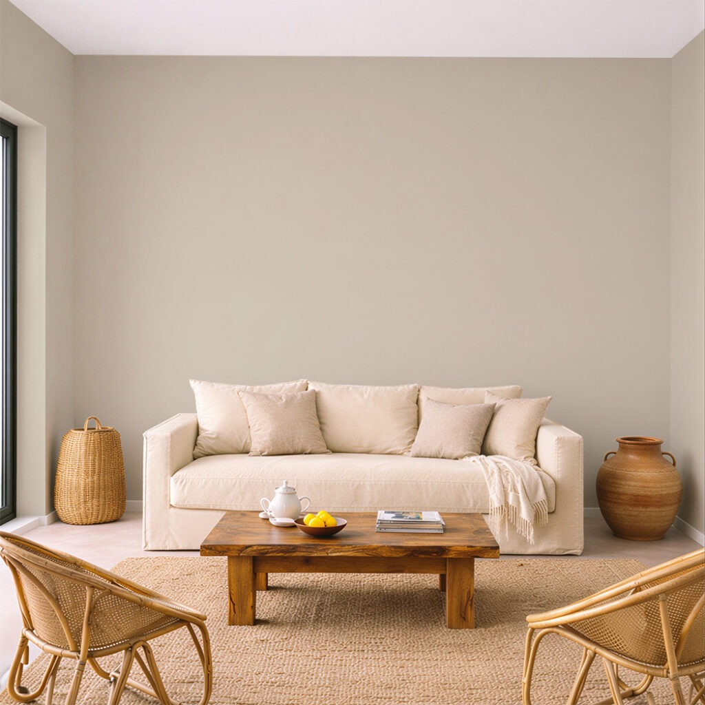 Inspirée du plumage clair de l’oiseau marin, la teinte mêle beige et gris dans un équilibre discret. La couleur reste calme et stable. Elle accompagne facilement les matières naturelles et les architectures sobres.