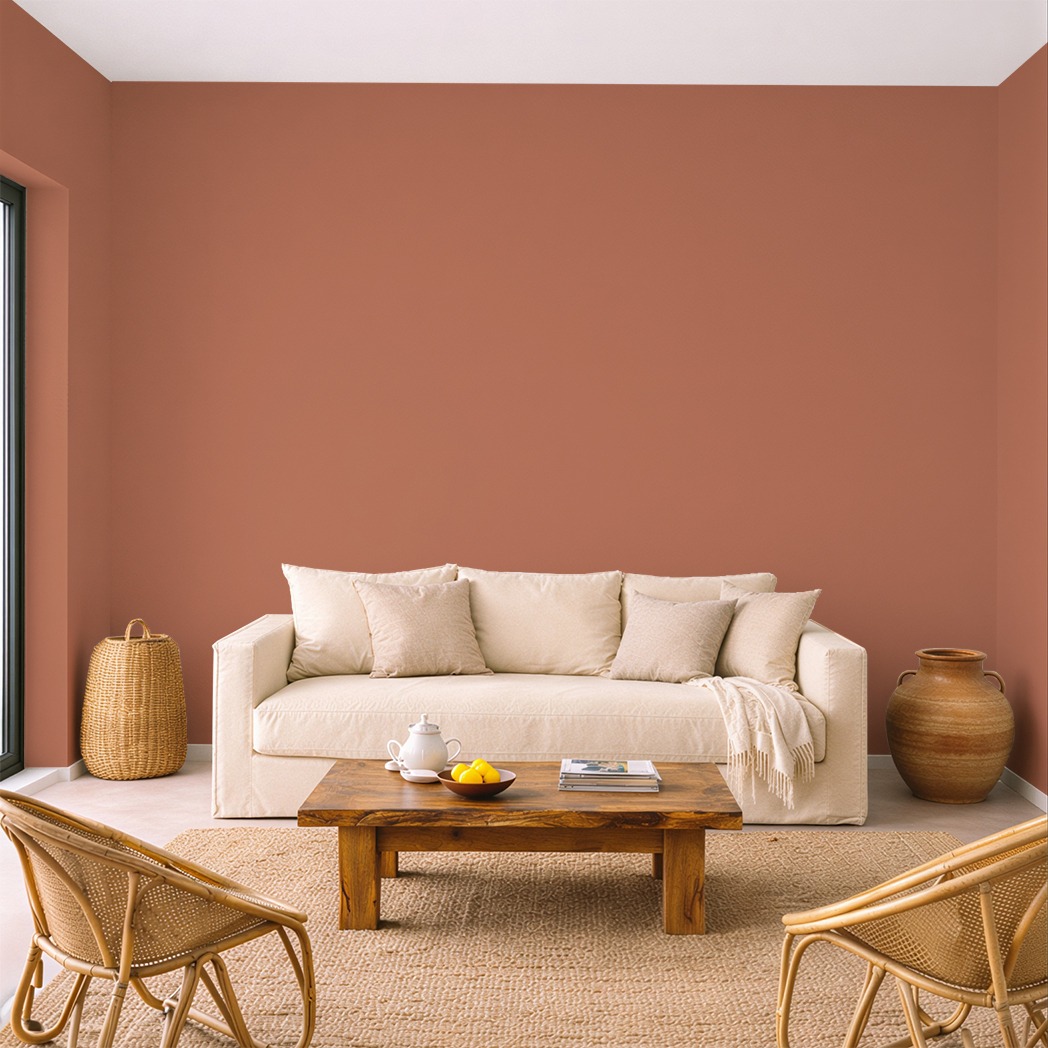 L’argile rappelle les terres utilisées depuis toujours pour la construction et la poterie. La teinte possède une profondeur ocre rouge légèrement brunie.