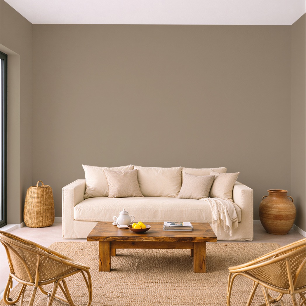 Évoquant les pigments de terre utilisés depuis l’Antiquité, la teinte appartient à la famille des ocres bruns. Elle installe une profondeur minérale et chaleureuse.