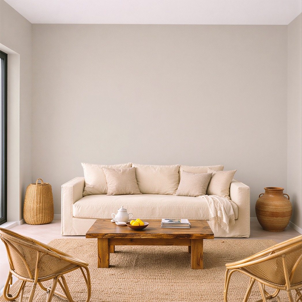 Tuff s’inspire des pierres calcaires tendres, comme le tuffeau des châteaux de la Loire. Issues de dépôts sédimentaires riches en coquillages, ces pierres offrent des nuances délicates. La teinte apparaît comme un beige légèrement rosé et grisé, à la fois minéral et élégant.