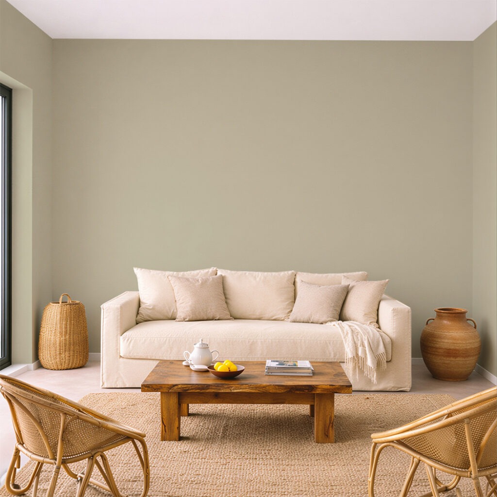 Vert tige joue sur un double sens entre la tige végétale et l’idée de vertige. La teinte marque une transition subtile entre les verts et les beiges, comme un moment de bascule dans la palette. Elle évoque l’équilibre fragile de la nature en mouvement.